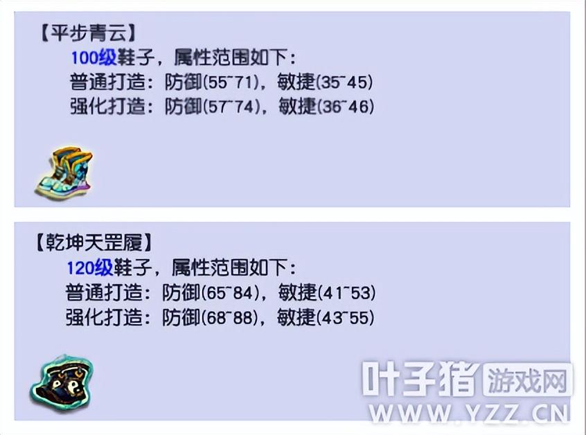 通过属性对比看出,100级的鞋子在好,也很难更得上120级的强化打造属性。所以,如果是本身拥有小极品鞋子的话,建议卖掉换个120级的,如果本身没有特别优秀的鞋子,那可以直接考虑购买120级强化过的高敏捷鞋子,任务体验会更好一点。