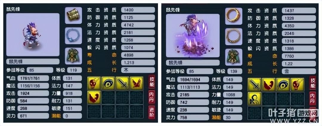 网红鼠是一个颇受欢迎的“抓鬼”召唤兽,这个无论是09还是29都非常喜欢,所以有这类召唤兽的话放心升级即可,技能和资质方面参考上图即可。