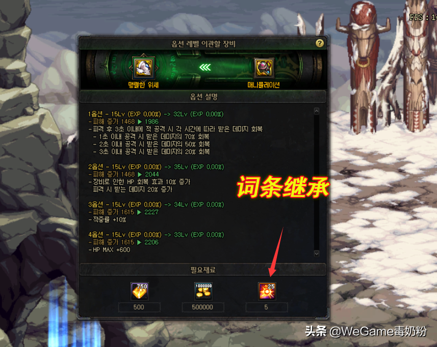 【3、词条继承】每次消耗500个金石头、50W金币,5个灵魂之源。可将A装备的词条等级,转移给B装备,不损失经验值,相当于打造继承的词条版。