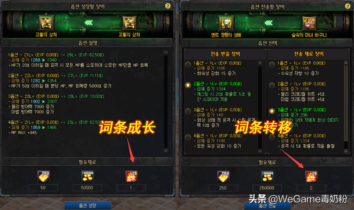 【2、词条转移】每次消耗250个金石头、25W金币、2个灵魂之源。注意自定义SS只能转移1种词条,比如你转移了词条3,那么下次转移还是这个词条位置。