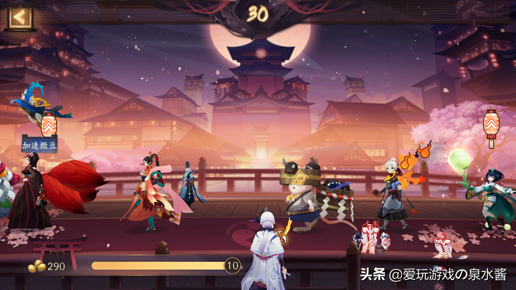 百鬼夜行砸票还是需要一定练习的,砸的时间次数多了,你越能把控豆子投掷的范围,愈加游刃有余。此外还有一个需要说的,如果遇到ssr/sp后面挨着其他式神,离得很近,然后又走到靠近地图左侧的情况,你有概率up的情况下,砸出ssr/sp的式神概率会变得很低,因为他后面的式神再帮他“挡刀",你能做的是在地图右侧或中间时尽可能砸出ssr/sp式神,不然走到地图左侧只能赌能不能砸到了。