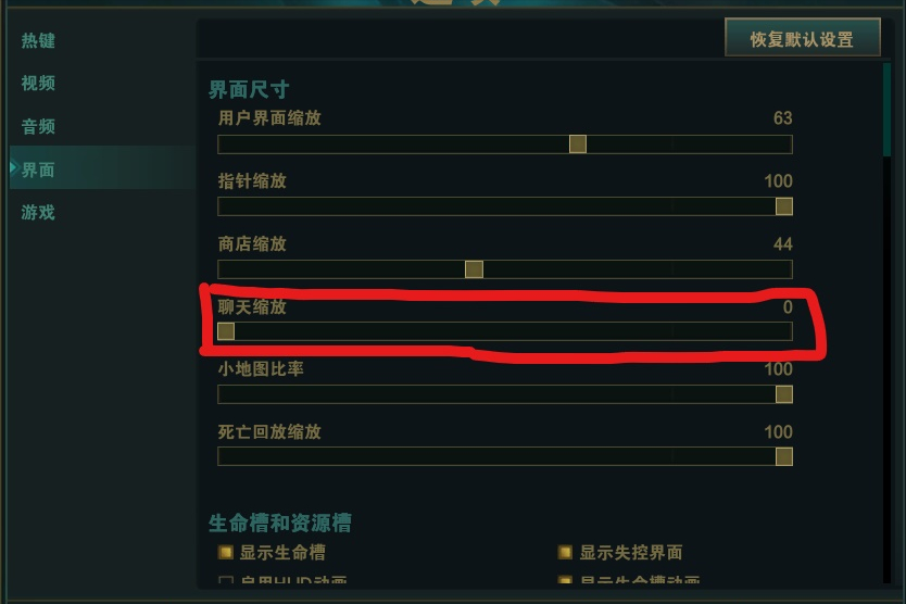 第二,聊天缩放设为0。