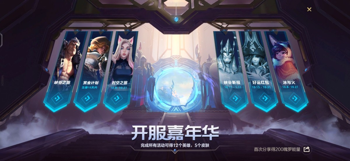 后面就是三个需要花费一定时间做任务的活动,不过任务都比较的简单,峡谷之旅活动大家可以获得三个永久英雄,时空之旅KDA活动可以获得两位永久英雄,冰与火活动中可以获得雪人努努与复仇焰魂布兰德,通过完成几天的任务之后,即可轻松获得!