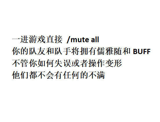 这个指令应该是最实用的,玩英雄联盟玩久了不想正常对线了怎么办?玩家们总想玩点骚套路,另类的玩法可能激怒队友可能激怒对手,所以这个指令是屏蔽所有人的对话,就是别人在公屏打字我们都看不到