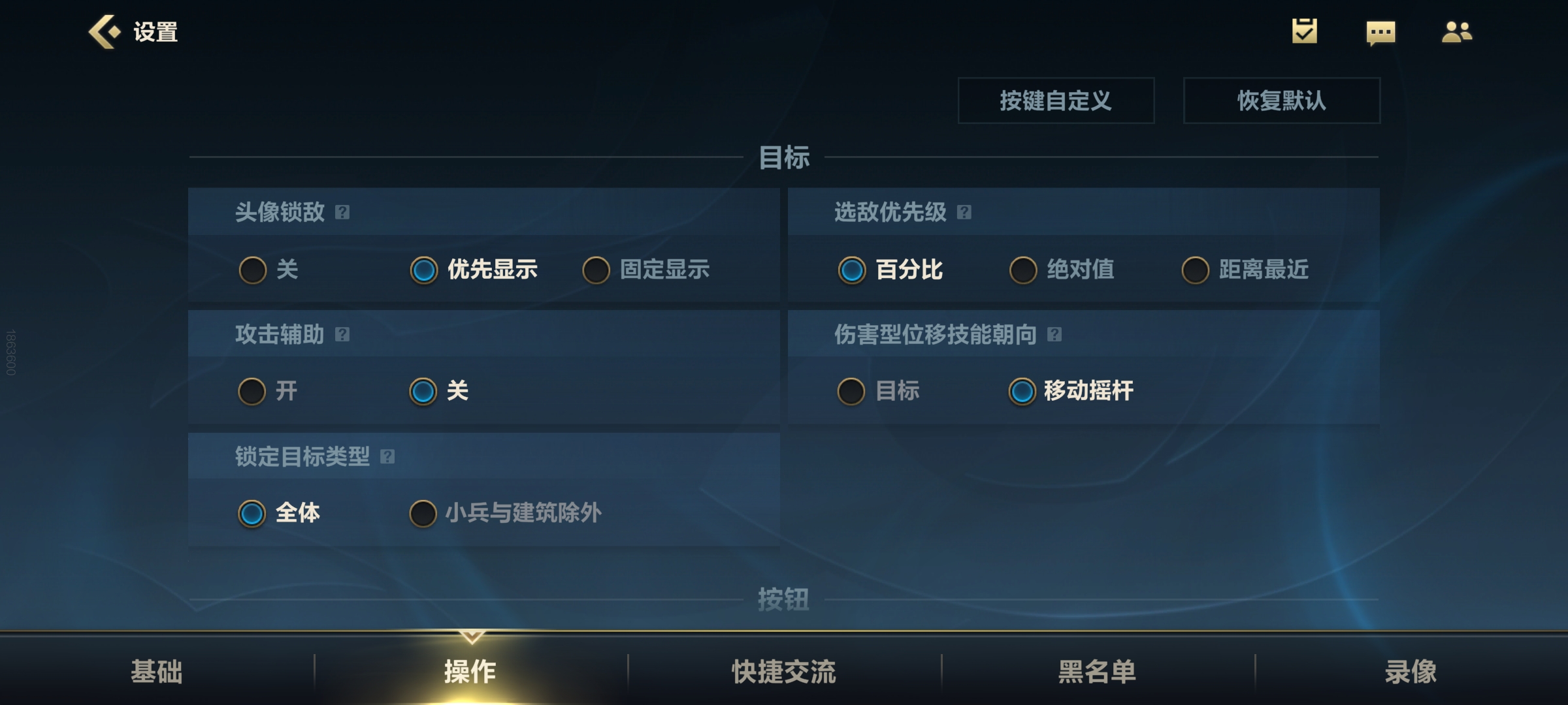 选敌优先级可根据所玩的位置进行条件,射手推荐为距离最新,其他则推荐百分百。