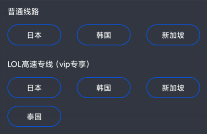 在鲁大师游戏助手,可以选择日本、韩国、新加坡、泰国LOL手游专线,也可以选择通用专线,通用专线也有韩国、新加坡、日本可选。专线加速,告别游戏卡顿。