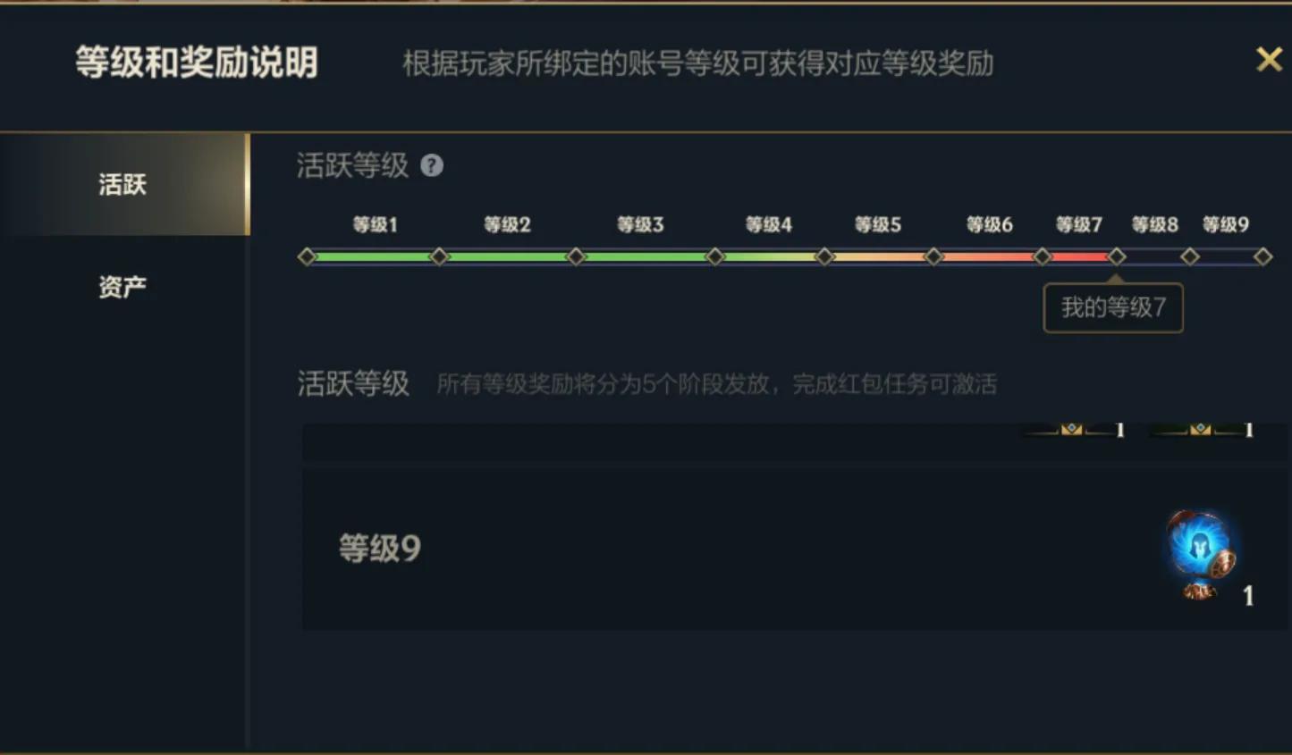 说白了,你的活跃等级高,可以领取到英雄,你的资产等级高,可以领取到皮肤。