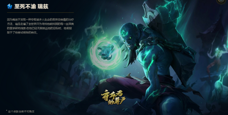 瑞兹至死不渝这款皮肤的名头非常大,而且这款皮肤极其稀有,这款皮肤是正义的化身。在S2初期出现了非常严重的BUG,在排位赛中到处都是卡无冷却BUG玩家,只有极少数坚持原则不去触及游戏底线的玩家只能默默忍受,看着神仙打架,后来经过严肃处理,只要使用过BUG的玩家都被封号最少一年。那些在游戏中遇到多次使用BUG,但坚持没有使用这个BUG的玩家,在BUG修复后被赠与“至死不渝”这一款皮肤作为奖励,就像上面那句话一样:“献给那些即使饱受创伤,仍然坚守正道的召唤师”。在此之后,再没有出现过这一款皮肤的发放,所以这款皮肤极其稀少,当时的发放总数也才5200多人而已,不过后来一些福袋抽奖活动也偶有放出。