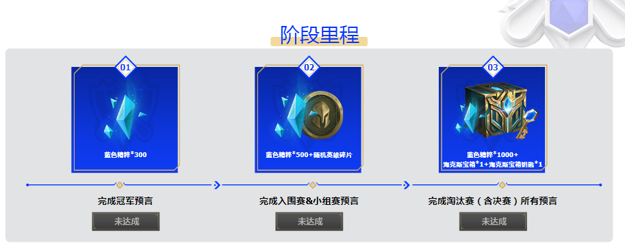 第一项就是预言任务,竞猜总决赛的冠军队伍,入围赛晋级队伍,还有小组赛和淘汰赛的进阶队伍。目前是只开了入围赛和冠军的竞猜,竞猜对了就有积分,而且竞猜越早积分越多。