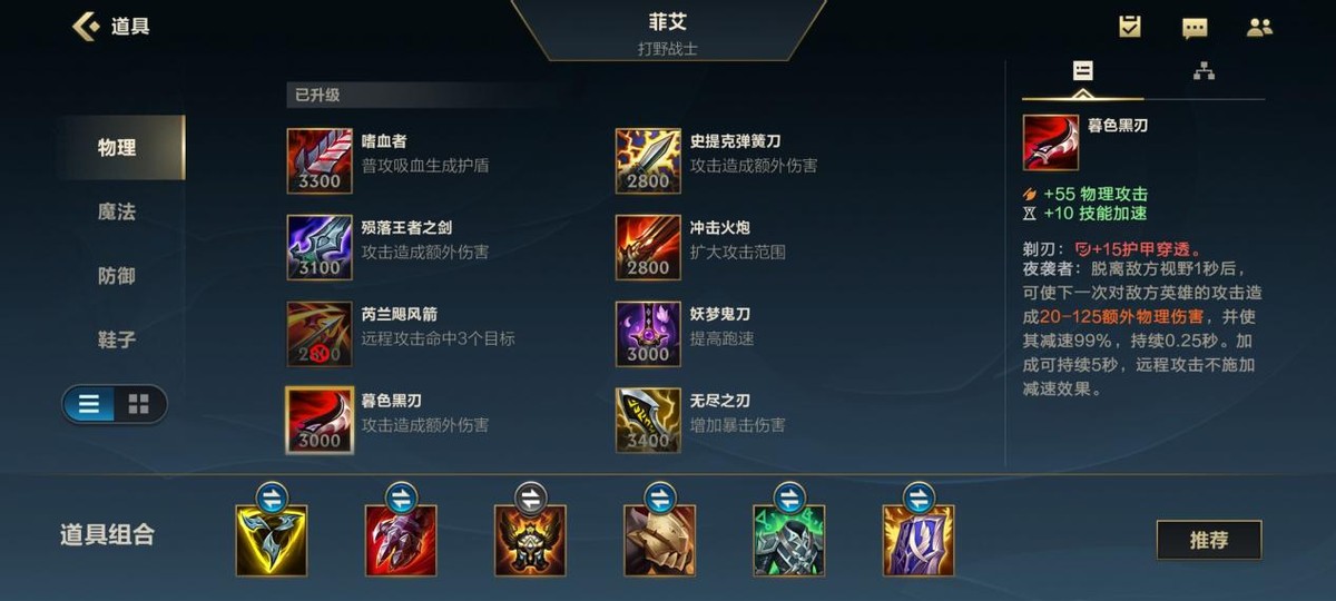 由于艾菲是一个注重普攻伤害的英雄,我们装备选择上可以找出一件三相,强化我们的普攻,然后出一个血手,之后就可以直接肉装三件套板甲,振奋,蓝盾,这套出装的我们甚至可以充当前排来玩,不用担心自己被瞬间秒杀。