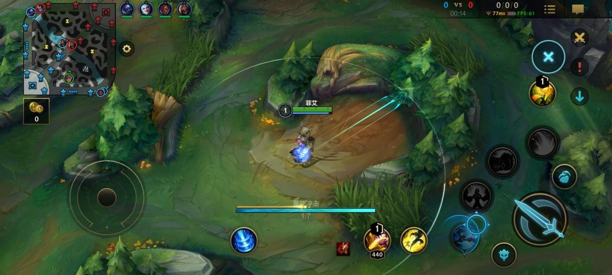 一技能:这可能是峡谷中相比之下超长的位移技能,不过这个一技能需要我们进行长按蓄力,然后才会向指定方向位移,而且蓄力时间越长伤害越高,同时也能击飞敌人,当我们抓中路的时候,可以在草丛蓄力,出其不意,配合中单将其带走。