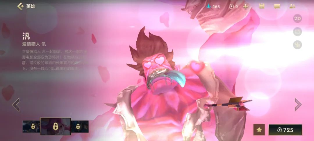 其实手游里薇恩-觅心猎手的皮肤动画做得也很好,是蒙多拿着一束玫瑰花追薇恩,最后被一发丘比特弩箭射到心脏,倒地的蒙多医生也是双眼冒爱心,十分诙谐。