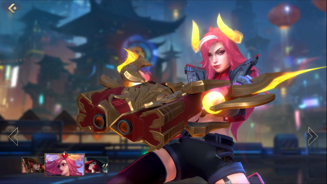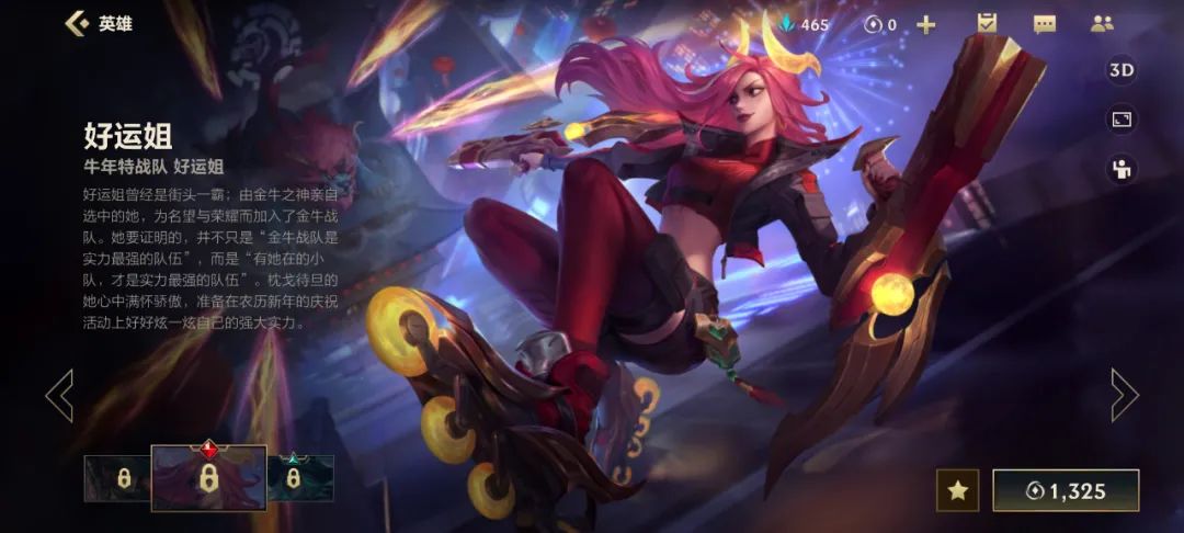 此款皮肤是赏金猎人牛年主题的手游独占皮肤,不管是英雄模型、英雄背景界面、英雄原画都是原创内容,而且做得十分讲究和精细,出场时后面的赛博朋克高楼大厦建筑都看得清清楚楚。