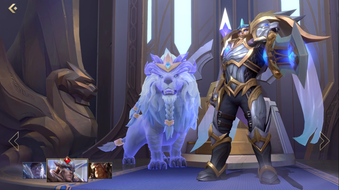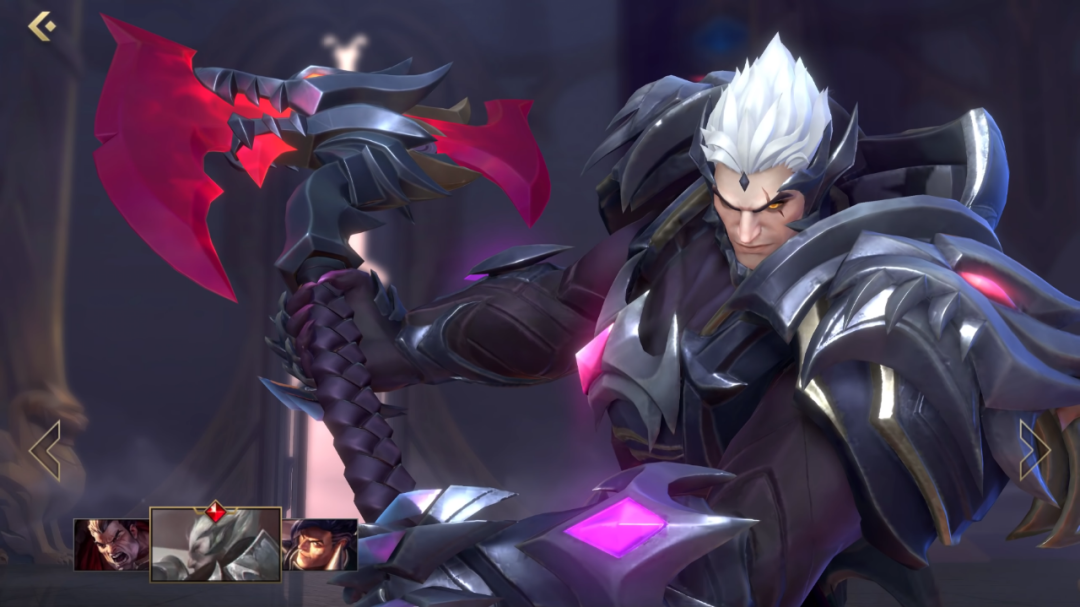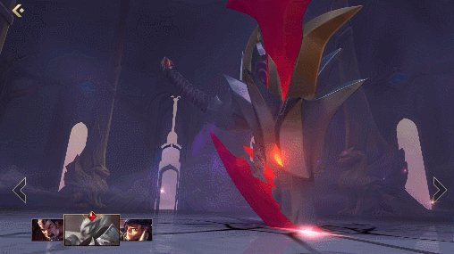 这里给不玩手游的兄弟们科普一下,对比端游来看手游是把英雄的界面整成了两种模式的,一种是常规就跟下面这张图相同的英雄或主题皮肤原画;而另一种模式则是手游独有的,可以看到英雄的一小段出场动画,还能够随缘旋转查看细节,并且每个英雄和他们的每款皮肤都有单独的内容!