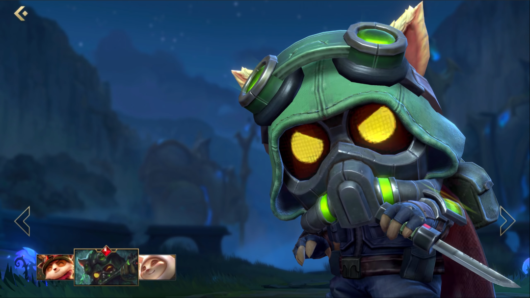 这个系列的皮肤,小炮和鱼人也有,但做得都没有提莫精致,价位也不是一个档次,本期盘点的皮肤都是最高价位的传说级皮肤~看看小提莫这帅气的出场动画,活脱脱一个约德尔特种兵!
