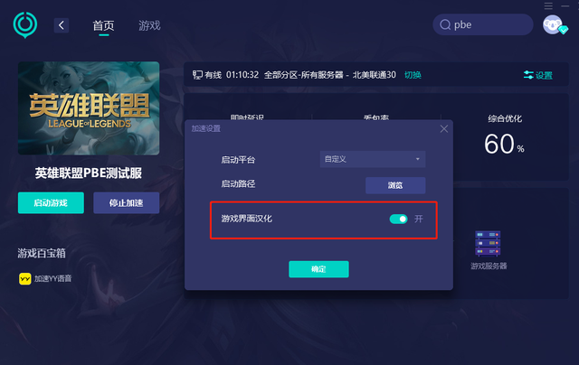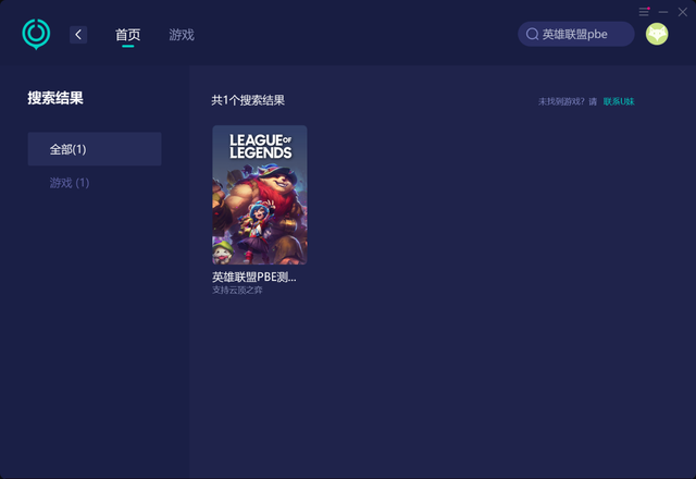 首先打开UU加速器,在软件内搜索到《英雄联盟PBE测试服》
