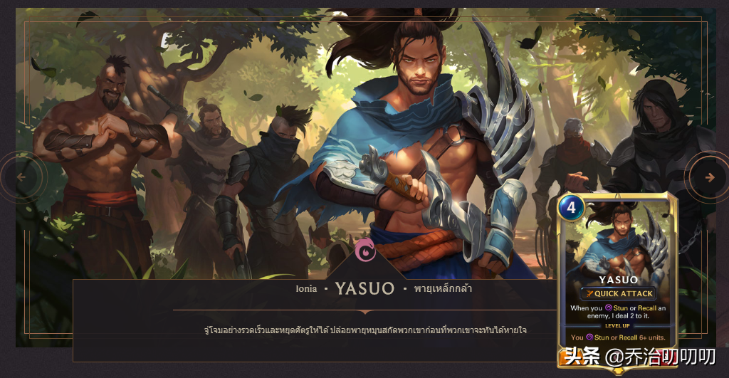 我们可以由上图看到,《符文大地传说》的卡牌和《炉石传说》还是有点相似的,也是几废-几废的身材构成,同时卡牌上面有着不同的技能。比如说这张亚索,它的身材是4-3,而他的技能是:当你用眩晕或者召回对方一张卡牌,对对方造成2点伤害。那么怎么造成眩晕或者召回呢?这个游戏规定,玩家不能同时手里有两张相同的卡牌,如果有那么重复的卡牌会变成这个卡牌上英雄的技能。比如,当你手里有两张亚索的时候,其中一张会变成亚索的技能牌:吹龙卷风,没错,就是英雄联盟里亚索的Q技能“哈撒开”。用这个技能可以造成眩晕效果。这个具体玩法我会在下一期具体来讲。今天我们先来入门教学。