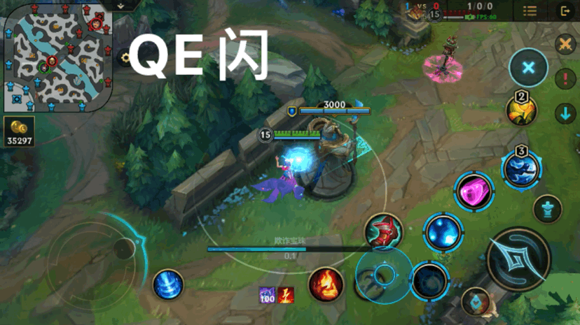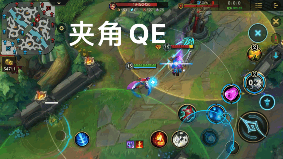所谓的夹角QE其实非常好理解,用Q技能去骗敌方走位,随后E技能与Q技能形成一个小夹角,要么吃满Q技能的伤害,要么就被E,这个通常是在越兵线压制时尤为的好用。