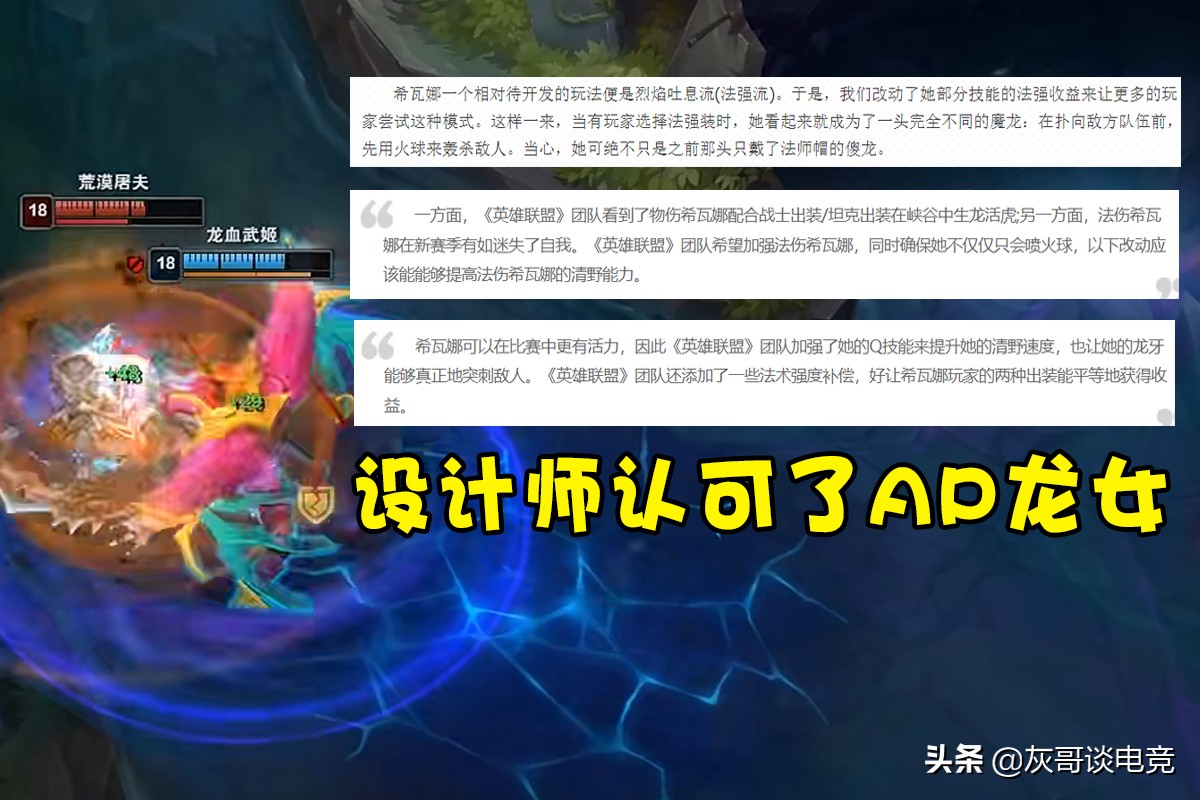 从早期设计师的一些留言中,我们就可以看出他们没有把AP龙女视作非主流,而是当成了一个值得开发的玩法来对待,并且龙女所有技能的AD加成自8.5版本之后就再也没有被调整过,或许在设计师眼里,现在的龙女就是一个AP英雄,之前只是“备胎”,现在不仅转了正,还把“原配”给挤走了,全英雄联盟应该就独此一家了吧?