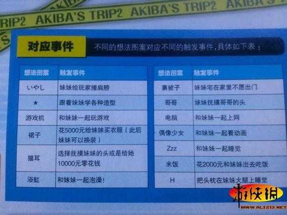 和妹妹一起玩最开心了啦,秋叶原之旅2中主角的妹妹非常的可爱,游戏中可以有很多的互动。下面小编为大家带来《秋叶原之旅2》妹妹触发事件与想法图案对应详解,一起来看看吧。