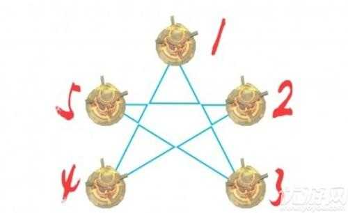 再重复一次,开启方法为依次点亮编号为:2、3、4、2、号石柱即可。