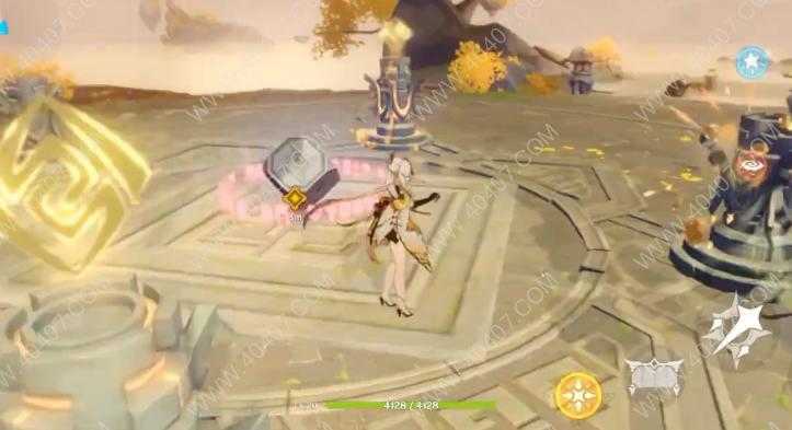 玩家进入秘境以后就直接走上楼梯,在这里就会看到岩属性石柱有三个是点亮的。