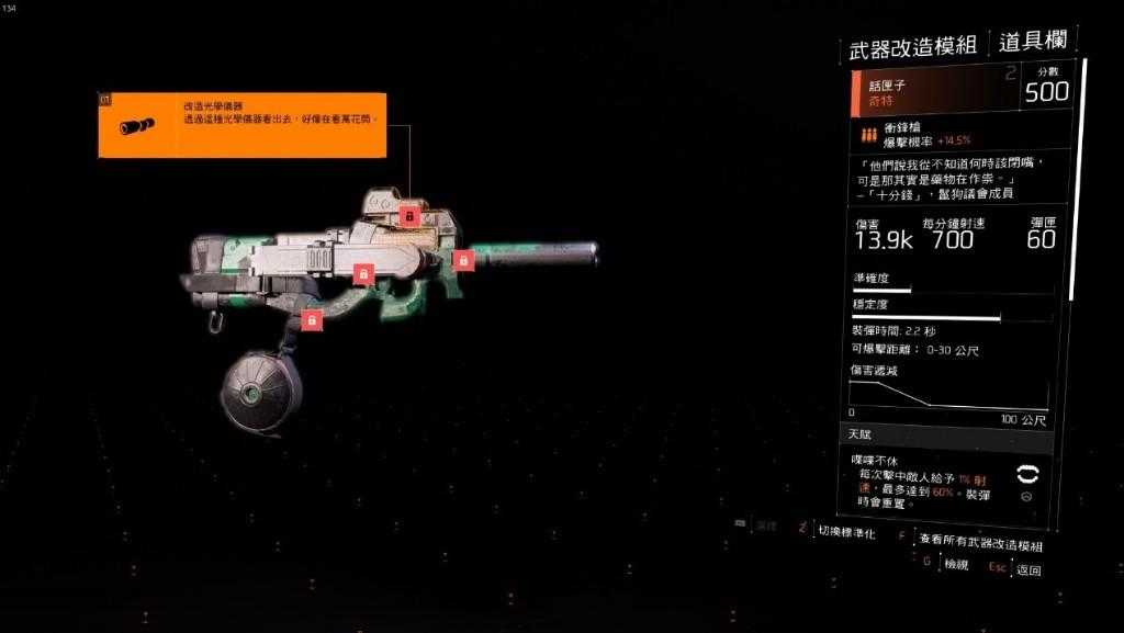 目前少数有用的奇特武器,虽然伤害步算高,但装备在第二把后他的攻速BUFF对轻机枪和其他连发武器都十分受用。