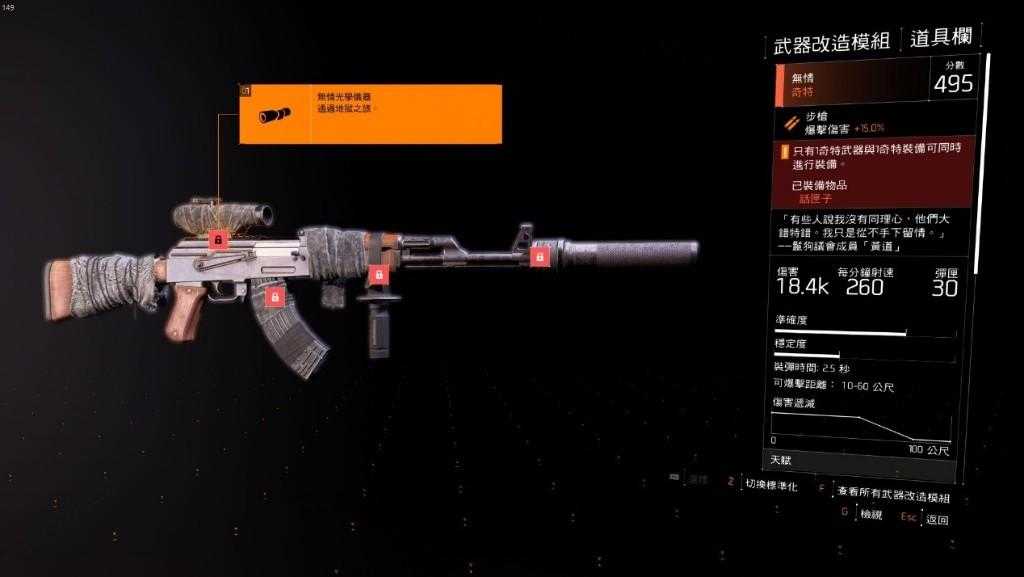 至于使用心得,个人认为爱国者的三色DEBUFF效果明显比较堪用,虽然要完全发挥需要等待将近12秒,但触发门坎很低,普通天赋也相当强。相比之下政令的流血伤害和特殊弹药掉落效果实际上没太多的作用,短期内还是爱国者较为堪用。