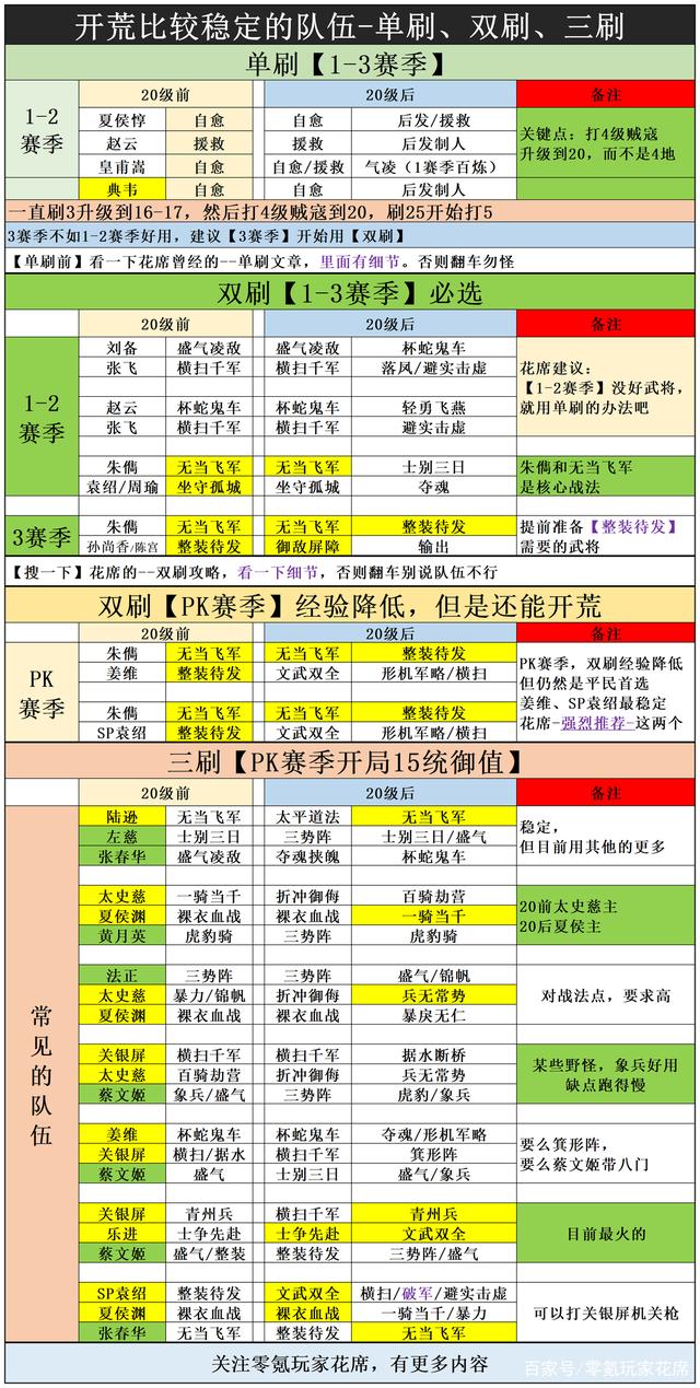 其他例如孙尚香、陈宫、太史慈、夏侯渊与朱儁的双刷,花席之前发过,现在就不讲了,因为PK赛季削弱了双刷经验,建议朱儁和姜维、SP袁绍搭配双刷,其他双刷不如这两个稳定,能换成三刷是最好的,除非你真的没武将。