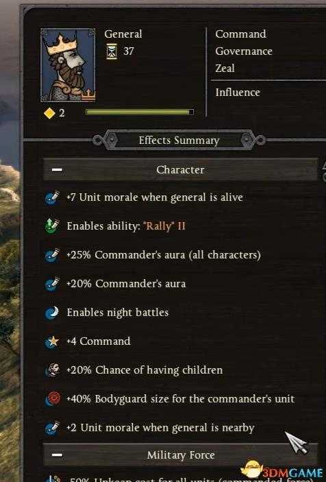独特的将领加成。所有英格兰国家的将领每回合会自动获得更多的XP,也就是经验值。同时,将领们在战场上会有Aura(光环)效应。在指挥属性上享受25%的加成。