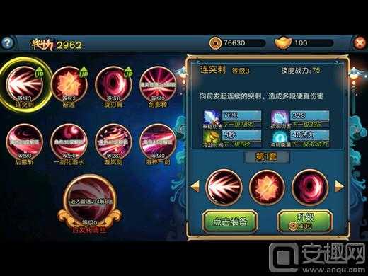 游戏中职业本身的技能拥有许多,但是每一次只能选择三个技能为一套连招,所以在对抗BOSS或者PK的之前,就要选择好不同的技能套路,这样才能有更高的伤害。而且个别技能地面和空中释放的形态也不一样,并通过升级技能,强化技能伤害,极大的增加玩家选择空间。