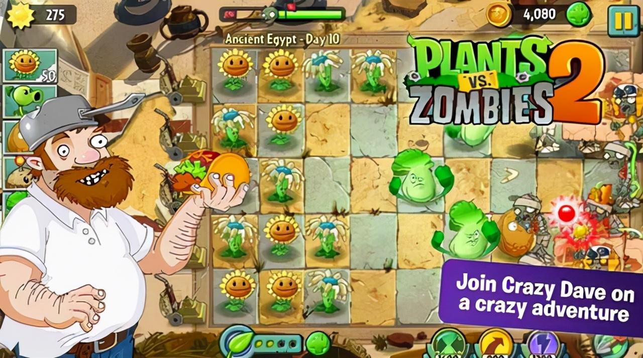 植物大战僵尸2是《植物大战僵尸》的全新续作。在沿袭了经典的植物防御僵尸玩法的基础上,新增了植物能量、手势道具、僵尸设定图及游戏关卡的选择场景,玩家将可以体验到古埃及、海盗湾及狂野西部三大主要关卡等新鲜元素。游戏同时集成了即时战略、塔防御战和卡片收集等要素,玩家控制植物抵御僵尸的进攻,保护这片植物园。与前作一样,关于植物与僵尸的种类,我们也一并都能够在游戏中看到。只是由于本次评测的游戏为英文版本,所以其中的内容笔者是一个都看不懂,但随着不久之后中文版的到来,这个问题也将迎刃而解。不过值得一提的是,PVZ2中有需要玩家自行付费的内购环节,不过该版本已经帮玩家进行了破解。