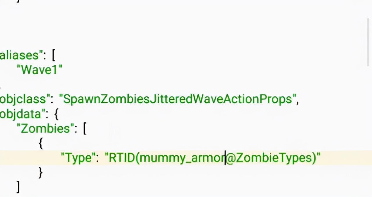 6、埃及普通僵尸的代码为mummy,我们将其代码改为指定僵尸的代码就可以了