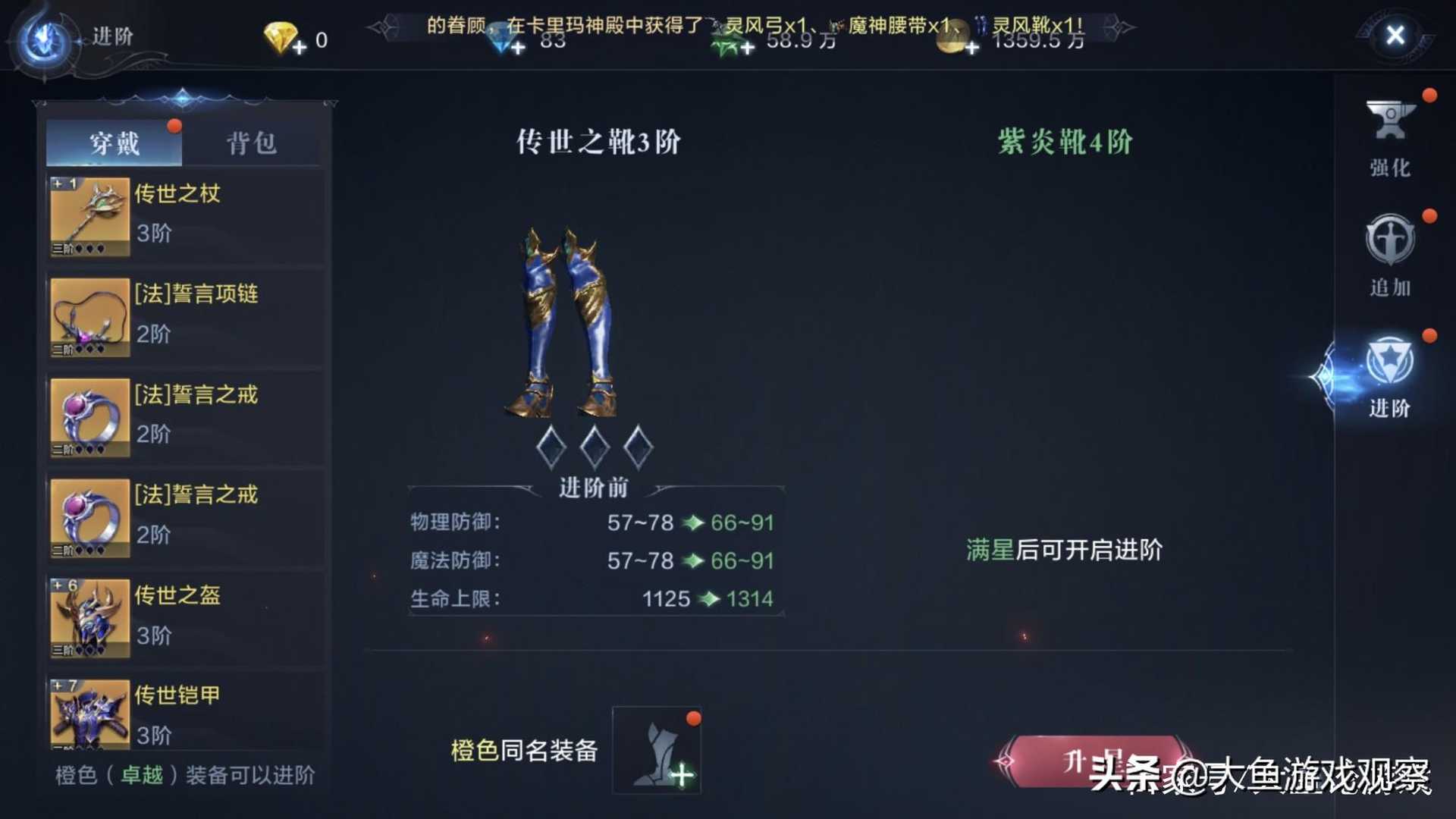 这一点比较重要,在二阶以后装备的进阶就成了问题,需要用相同名字的装备进行进阶升级,升级到高等级装备,这里其实也不用怕,只需要正常刷副本和在交易所购买合成即可,前期消耗不大后期消耗只要慢慢积累都可以正常进阶。