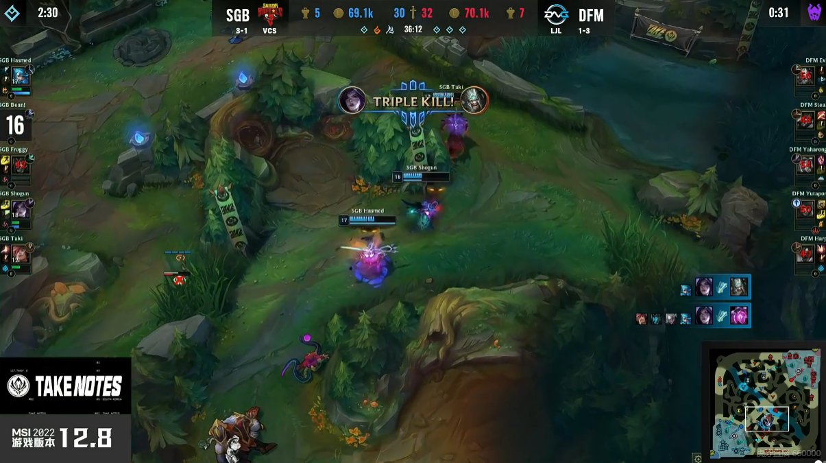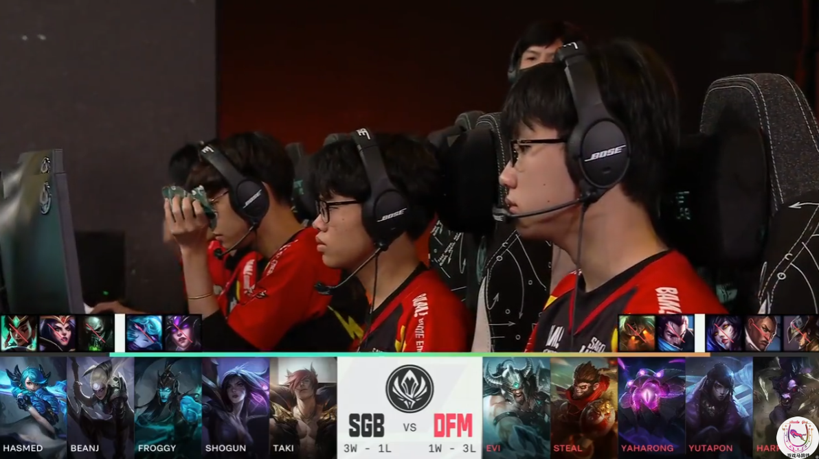 由于T1的存在,加上同组内拉美太弱的关系,第二个晋级名额就变成了日本DFM和越南SGB的直接对决。从第一轮的表现来看,SGB的下路组合很强,而DFM的打野是核心。只是谁都没想到SGB在这场比赛中的BP非同寻常。用玩梗的角度来说就是请神请到非常规的Theshy了。