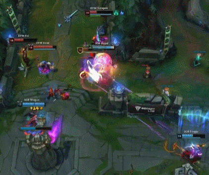 SGB的BP出乎意料,拿出了单线复仇之矛,LPL的观众对于这个英雄走单线的印象,还要追溯到Theshy在IG时期。而DFM也是拿出了维克兹,对于彼此胜负决定晋级机会的这场比赛而言,可以说都是亮出自己的底牌了。只是由于越南不会运营的关系,打架打输了的情况下,中期开始被DFM经济反超。