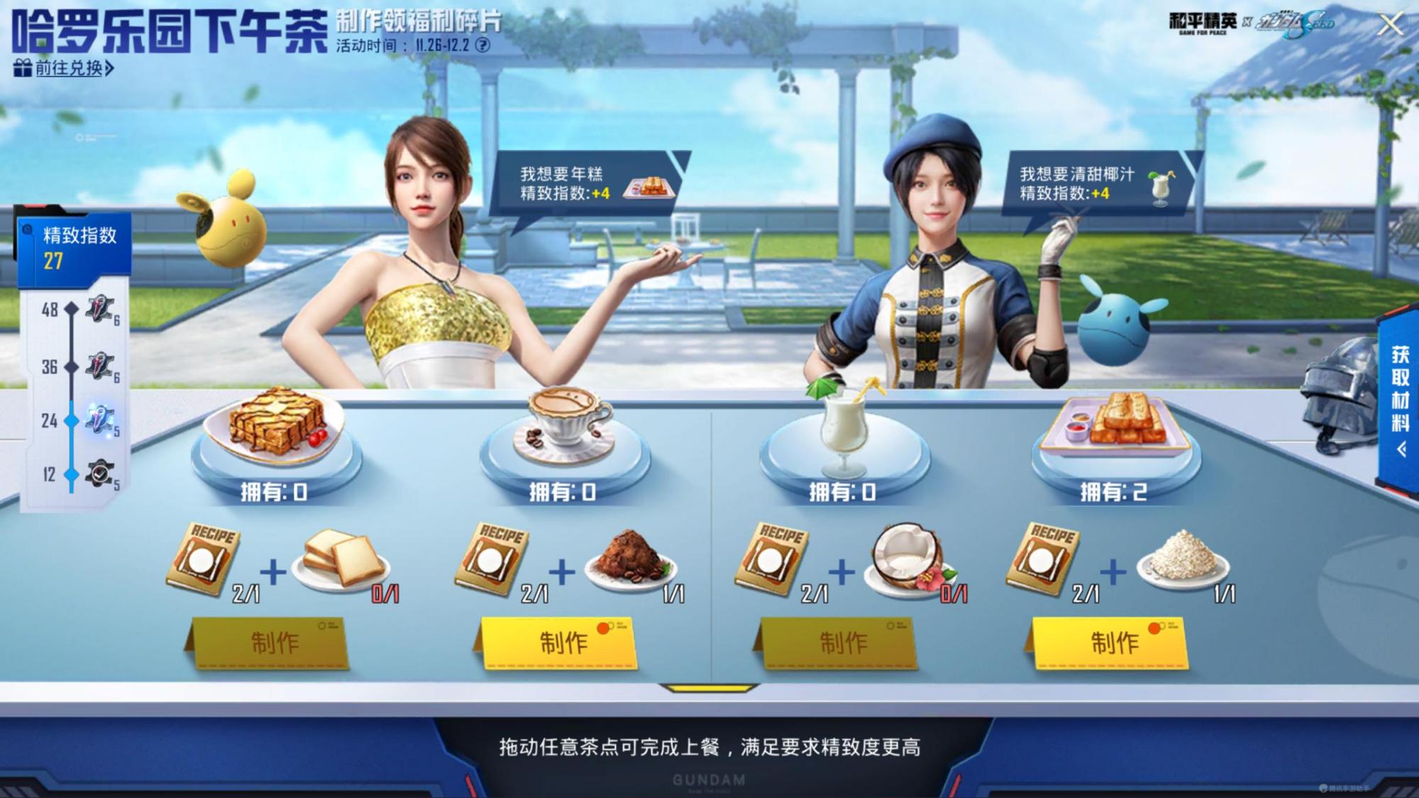 使用5个口令暗号兑换完奖励之后,我们再次来到“哈罗乐园下午茶”的页面,完成一些最基础的任务,就可以获得10个高达碎片。