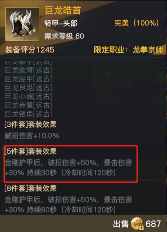 不要忘记了超强的职业套装哦!5件套效果可以让龙拳宗师在爆发层面有一个飞跃式提升。