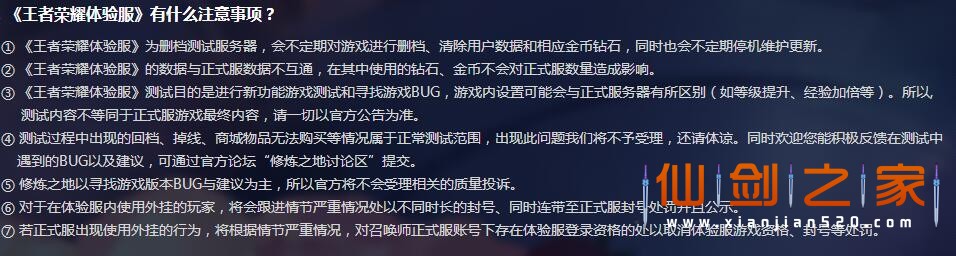 3王者荣耀体验服测试目的是进行新功能游戏测试和寻找游戏BUG,游戏内设置可能会与正式服务器有所区别。所以测试内容不等同于正式服游戏最终内容,请一切以官方公告为准。