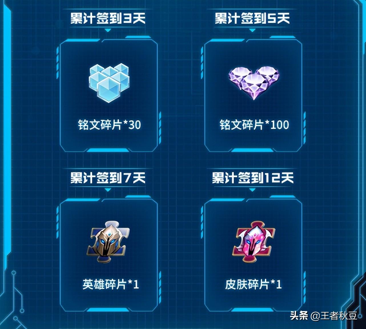 每周7日签到是大部分玩家获取皮肤碎片的途径,在第七天可以领取皮肤碎片礼包,打开可获得1~3个皮肤碎片,一个月最少也4个了。