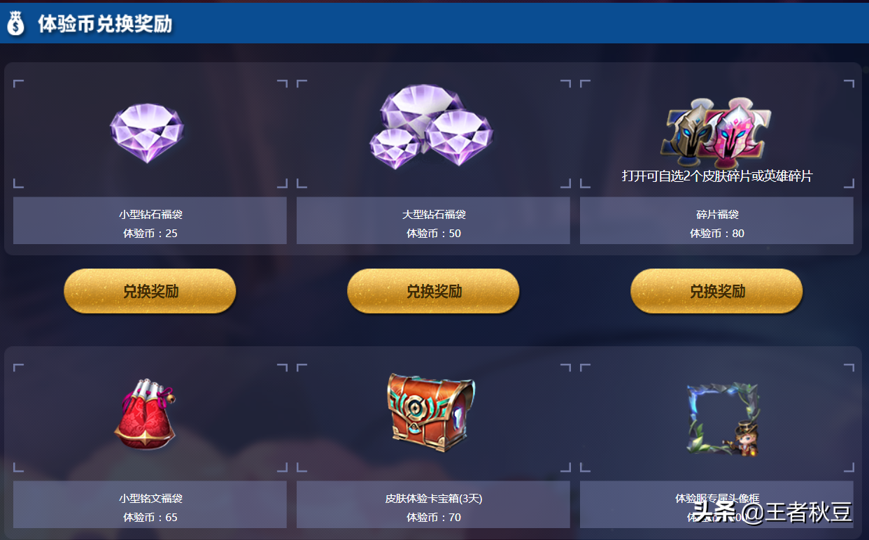 王者体验服可以通过对局和更新游戏获取体验币,每80个体验币可以兑换正式服的2个皮肤碎片,每天最多兑换1次。