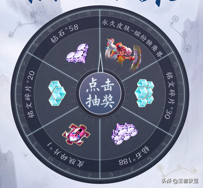 在官方微信公众号每日一题,回答正确就是获得一次抽奖机会,有机会抽到皮肤碎片*1,甚至抽到小乔-缤纷独角兽。由于这是抽奖概率,运气再差一个月算30天也能抽到一个碎片吧。