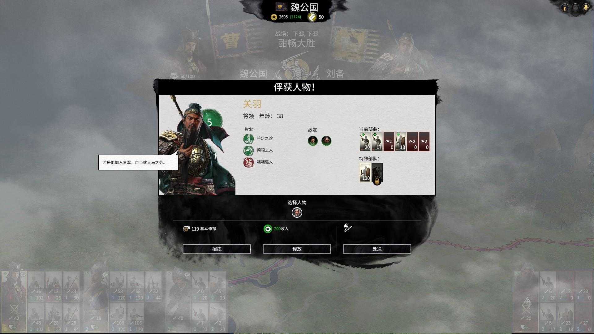 这一点,无疑是CA在整个DLC中,设定最迷惑的一点。按理说,官渡之战,袁绍对比曹操是占据绝对优势的,结果在游戏里,曹操能随随便便就拉出3、4支满编部队,而袁绍,为了养部队,却只能勒紧裤腰带过日子。至于附庸能帮助战斗这点,AI操控,是肯定不如玩家自己使用来得厉害。