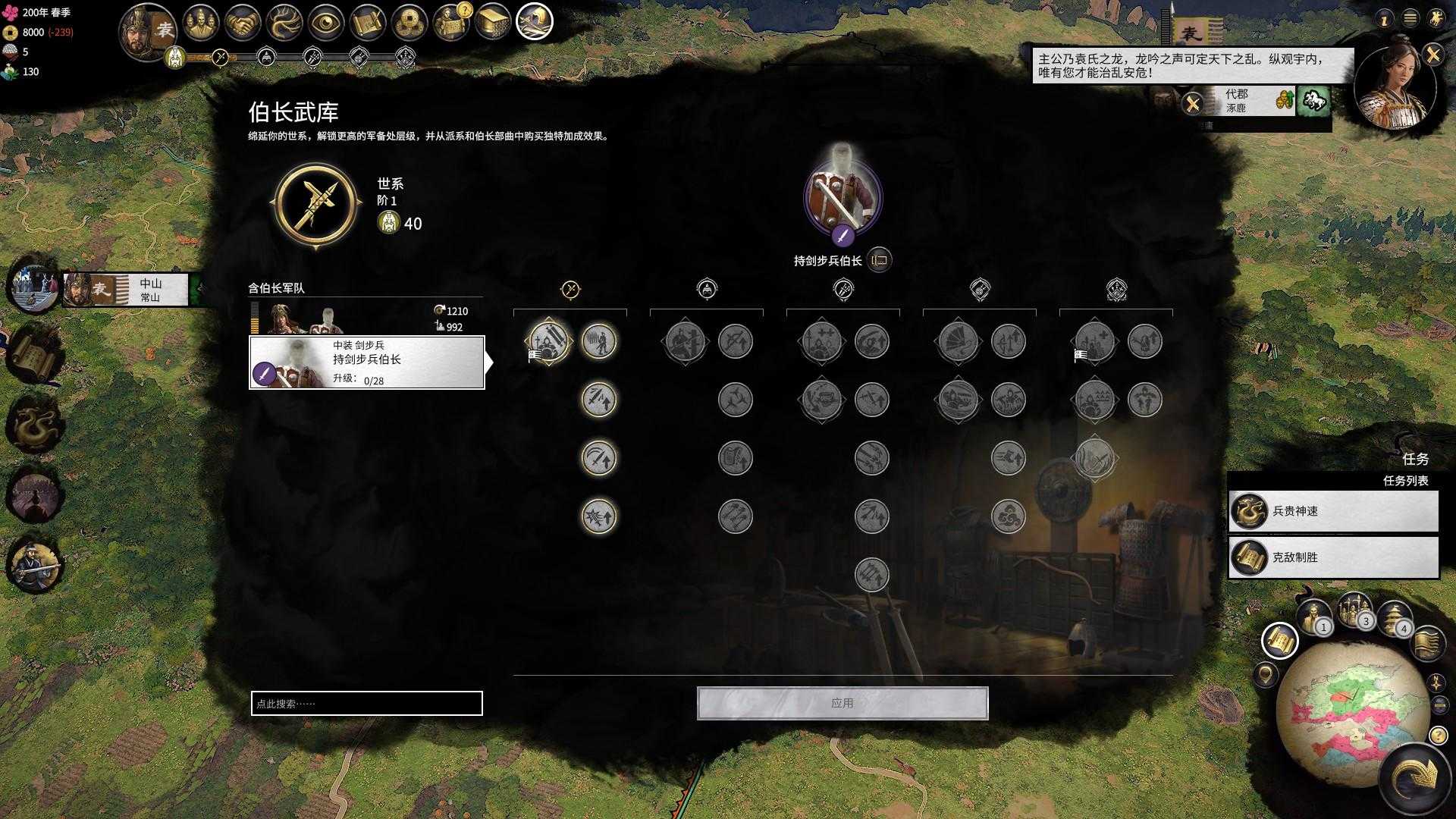 CA为了帮助袁绍所想出的方法,就是为其新加了“伯长武库”,这一全新机制。“伯长武库”说白了,就是花费袁绍特有的“世袭”点数,为手下的伯长部队增加各种属性和特性。这类的强化部队机制,已经在最近的“全面战争”游戏DLC中,连续出现两次了——《全面战争:战锤2》的“不洁者”斯诺特和《全面战争传奇:特洛伊》的狄俄墨德斯。算上这次的袁绍,CA还真是“一招鲜,吃遍天”。