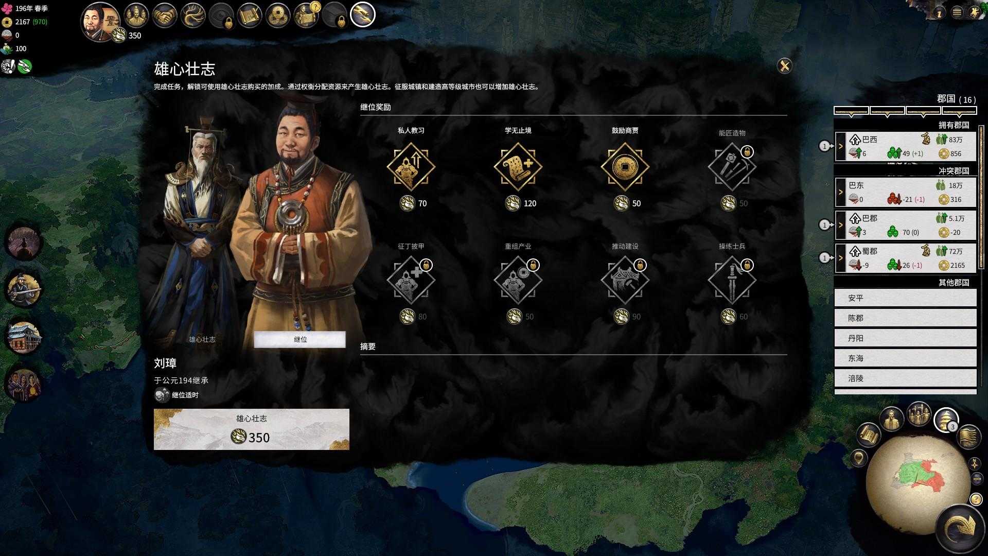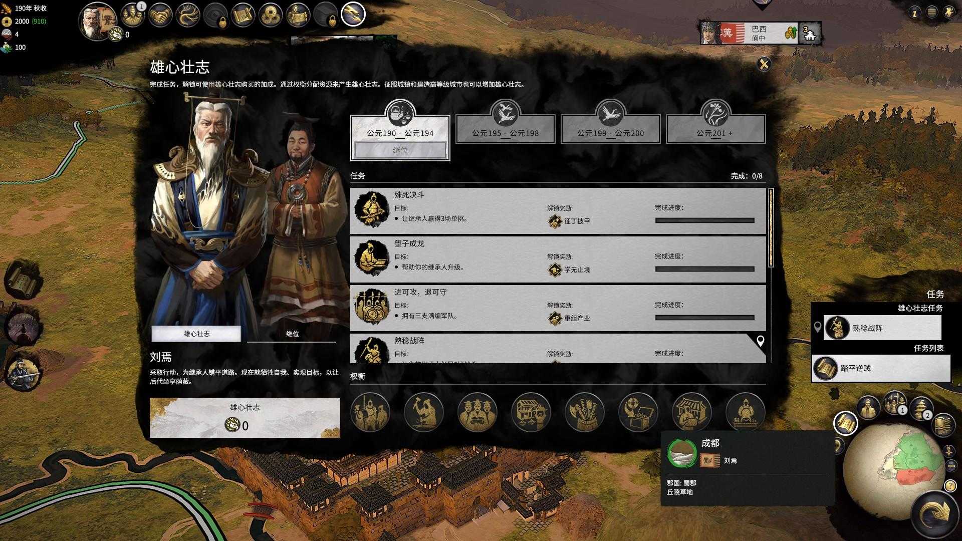 不过,这个机制就是一次性体验,仅限刘焉时期可用。到了刘璋继位,就没有培养继承人的任务可做了。这基本限制了玩家,只能选“190年”节点的刘焉,才能对这个系统有足够多体验。