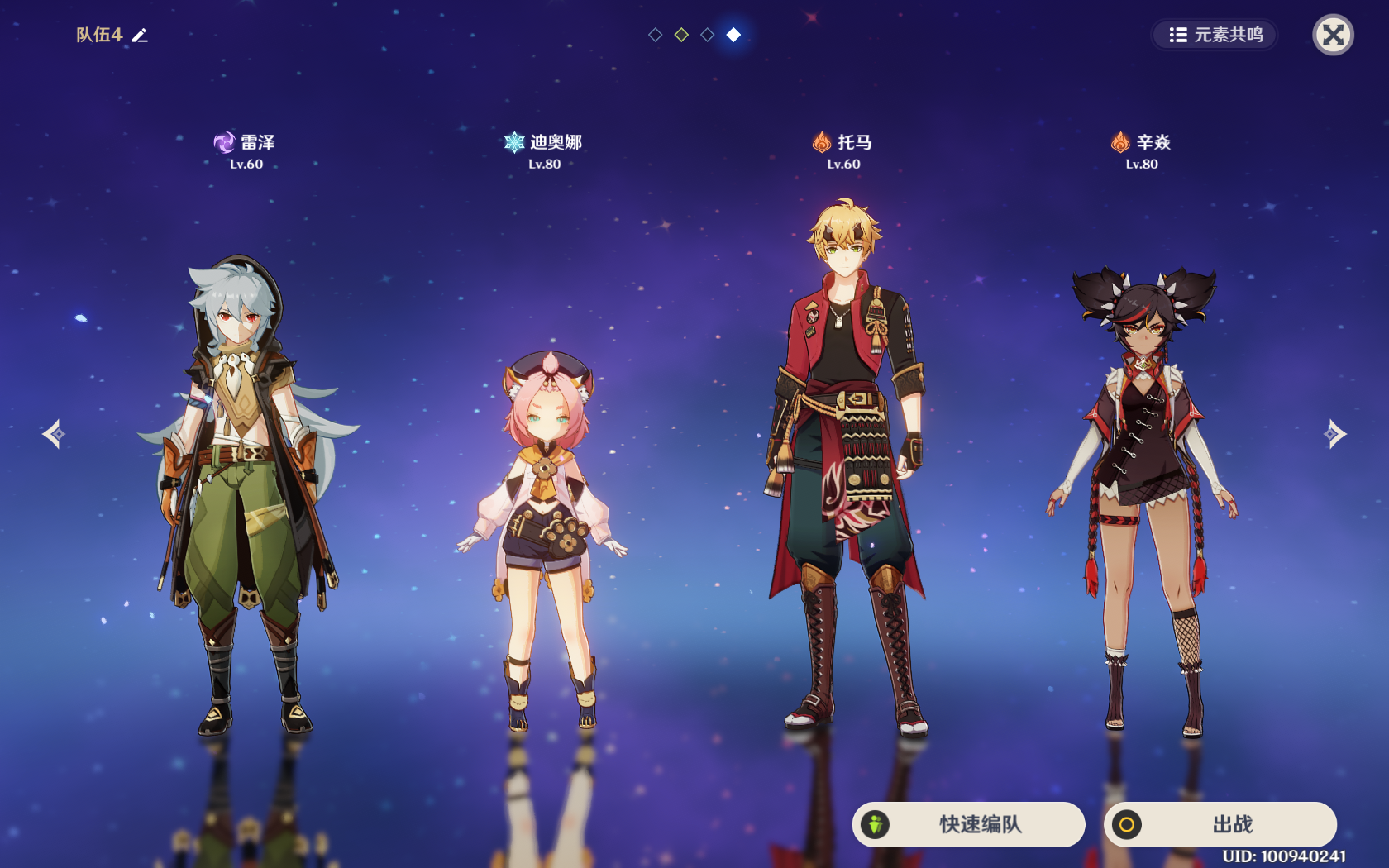 队伍搭配:可以是雷泽加冰再加双火的组合,这边冰属性角色最佳的是七七,其次是迪奥娜,凯亚,重云,用来挂冰给雷泽打超导,降低敌人物防;双火推荐有护盾的,同时用来加攻击。