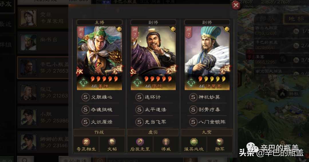 这里多说一句,姜维的兵书可能有些小伙伴存在困惑,我个人有个大概的规则。全智力姜维就带奇正相生文韬,全武力就带蛮勇非勇执锐,主将姜维一般加全智力,这样可以最大化兼顾输出和自带技能对对面的减属性效果。