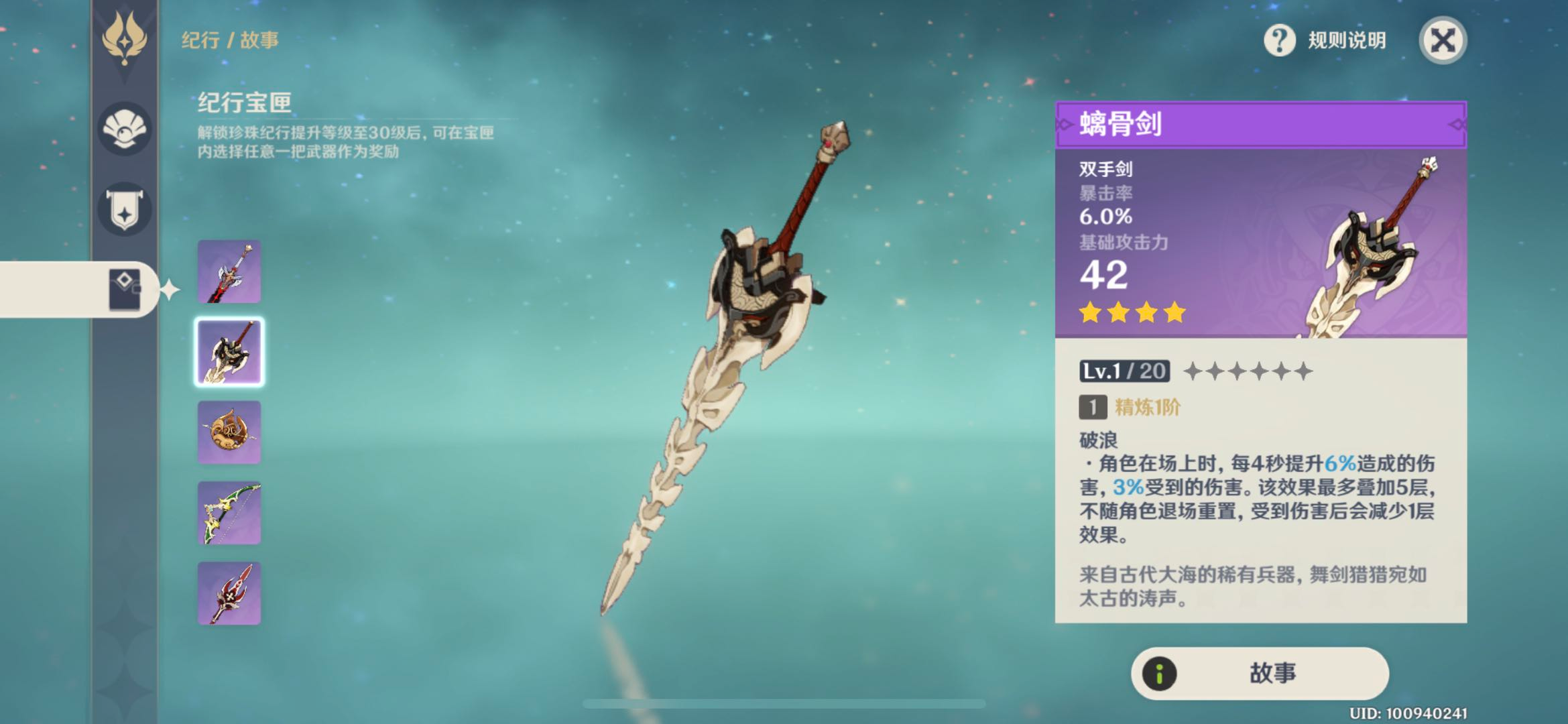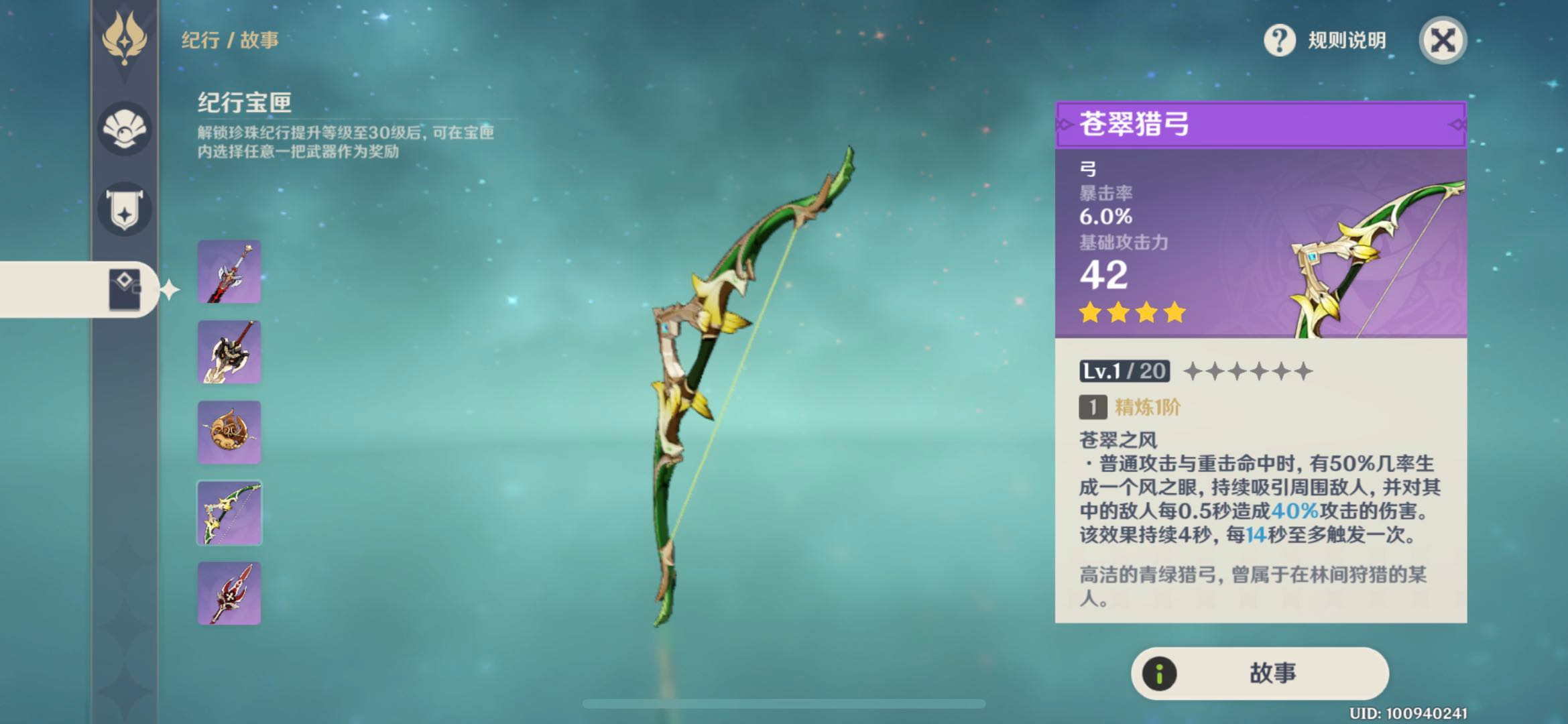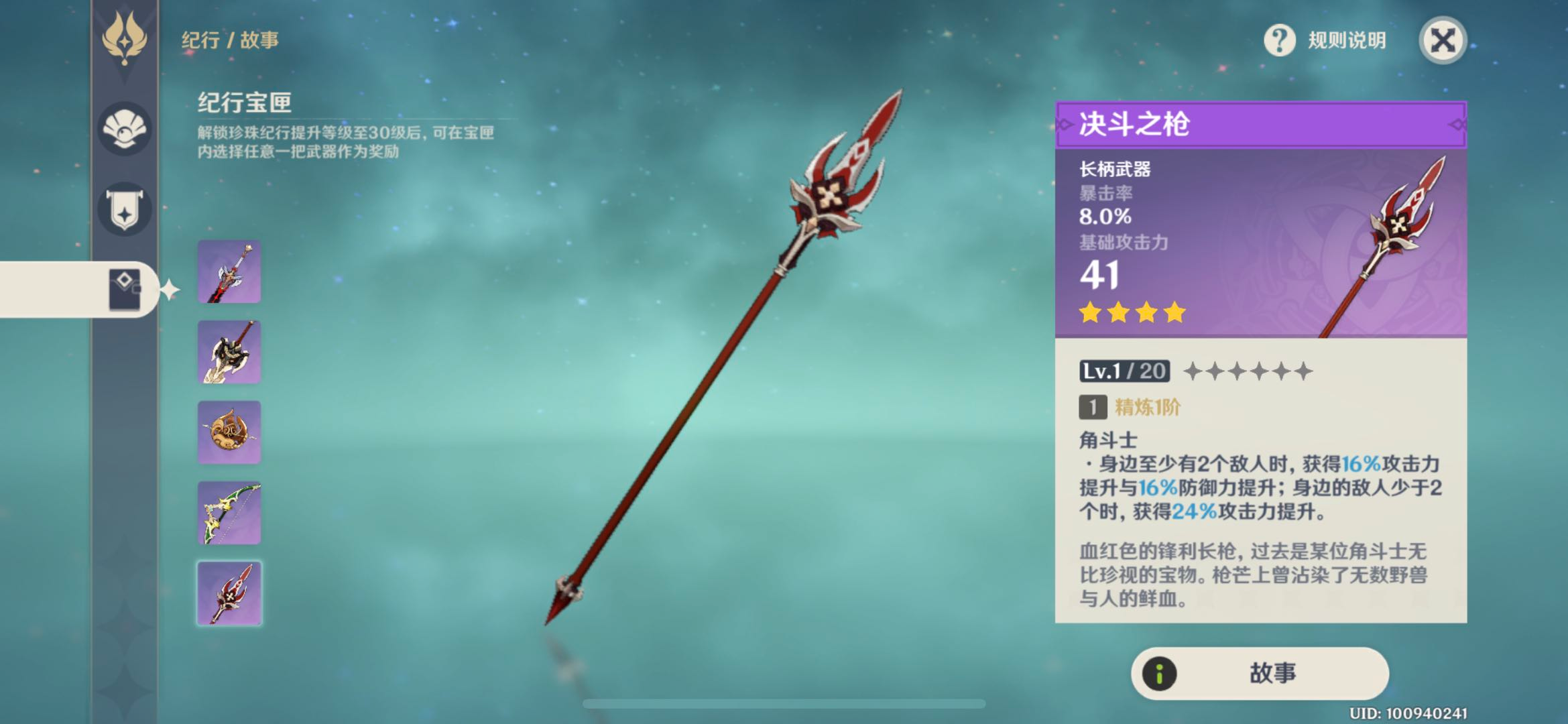 在这个活动获得的道具中,要数自选四星武器选择箱因其优秀的属性而最受大部人所关注。(纪行30级时获得,不是开通就送哦,请注意,勿空欢喜。)