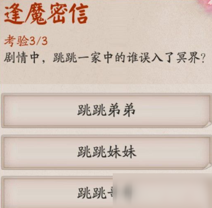 阴阳师跳跳一家中的谁误入了冥界(逢魔密信正确答案)