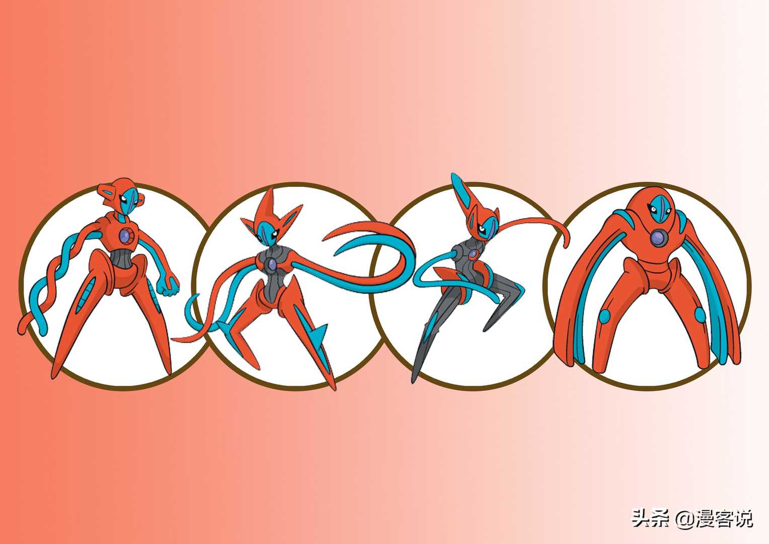 代欧奇希斯,来自宇宙的超能力属性宝可梦。目前它拥有四种形态,上图分别是它的普通形态、攻击形态、速度形态和防御形态。
